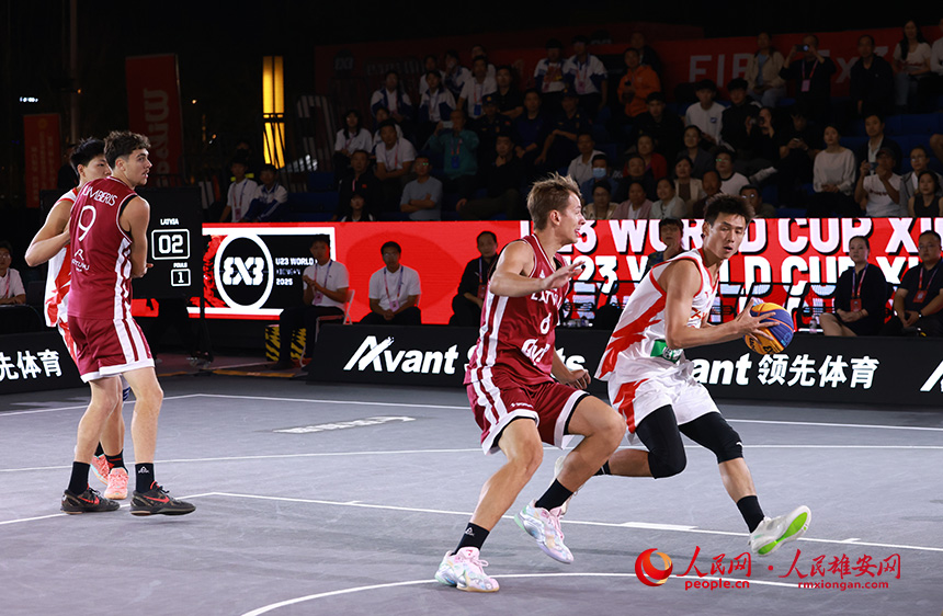 人民網雄安9月21日電 (李兆民、席彪)以“齊聚未來之城,共繪世界籃圖”為主題的2025國際籃聯三人籃球U23世界杯正在雄安體育中心南廣場“火熱”進行。截至9月20日晚,男子組、女子組8強全部產生,其中中國男隊將在四分之一決賽對陣捷克隊,中國女隊將在四分之一決賽對戰法國隊。 男子組中國隊與拉脫維亞隊比賽現場。