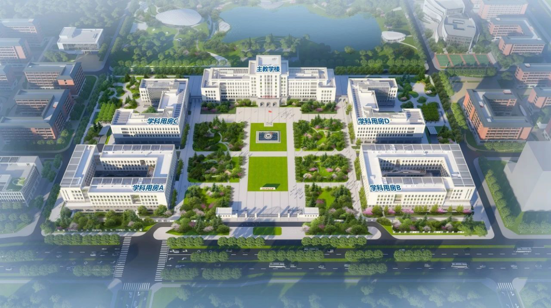 人民網雄安8月20日電 (記者宋燁文)塔吊林立,機械轟鳴。今天,北京科技大學(簡稱“北科大”)雄安校區第二組團項目學科用房A、B+主校門、辦公服務中心組團開工建設。 北科大雄安校區主教學樓組團鳥瞰圖。