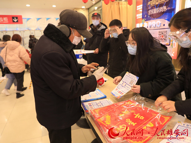 記者在現場看到,新區應急管理局黨員志愿者向群眾發放疫情防控及家庭安全宣傳單,講解防疫及安全常識,鼓勵群眾參與互動答題贏取春聯、福字套裝和口罩等紀念品等方式,向群眾宣傳、普及安全知識。