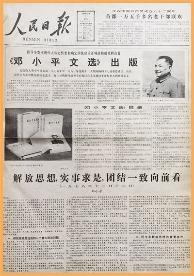 1983年7月1日,《人民日報》第一版刊發《解放思想,實事求是,團結一致向前看》。資料照片