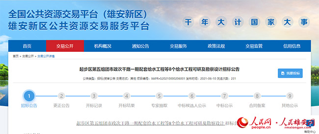 人民網雄安6月12日電 (何美萱)據雄安新區公共資源交易服務平臺消息,雄安新區起步區第五組團市政次干路一期配套給水工程等8個給水工程可研及勘察設計,目前正進行招標。