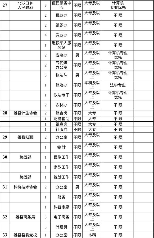 3、符合雄縣2021年高校畢業生公益性崗位開發計劃表崗位要求條件;