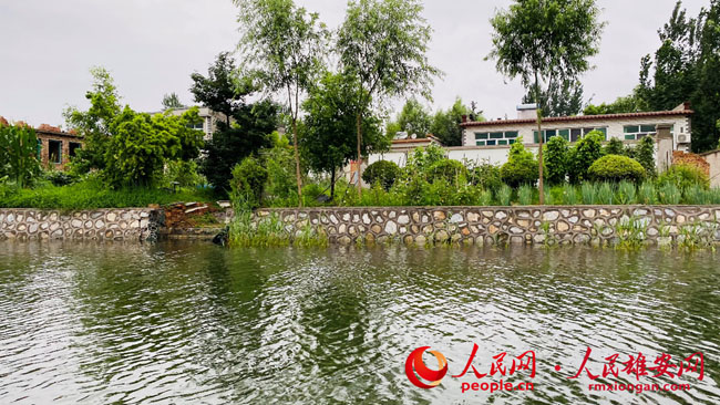 王家寨村岸邊,淀區水位距地面仍有明顯高差。人民雄安網 劉師豪攝