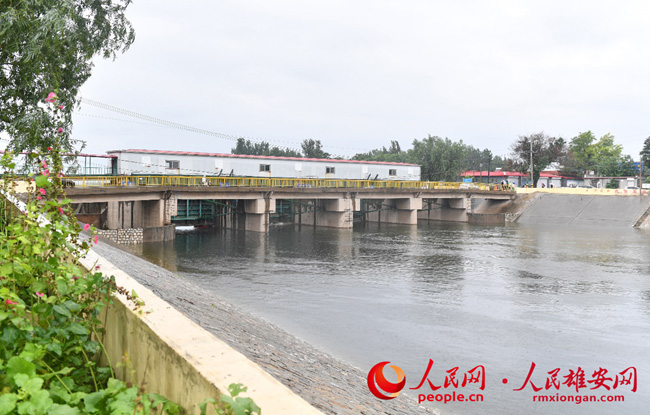 隨著水位的升高,位于雄縣棗林莊村的棗林莊樞紐自7月11日起開始泄洪,29孔閘門全部開啟。棗林莊樞紐連接著白洋淀和下游的趙王新河,承擔著為淀區泄洪的重任。