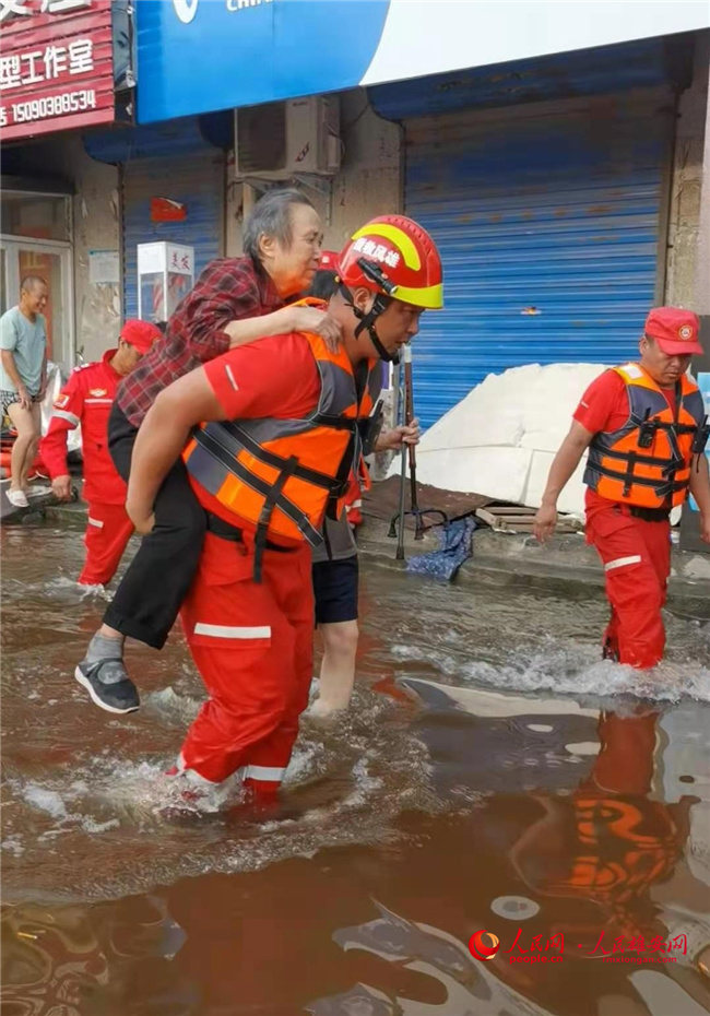 夏江濤回憶,他們所救援的被困點在新鄉牧野大橋,村內有上百名被困群眾需要轉移,“情況緊急,水又很深,村民房前屋后的不少樹木都被淹沒,就像在水中擺下了‘迷魂陣’,沖鋒艇也只能在水中緩慢地前行。我們一人駕駛,兩個人攙扶著老百姓,趟水前進,就這樣轉運了幾十趟!