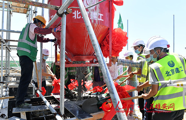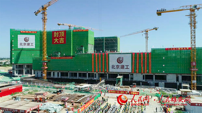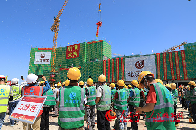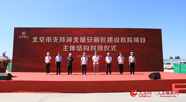雄安宣武醫院一期封頂儀式現場。人民雄安網 宋燁文 攝