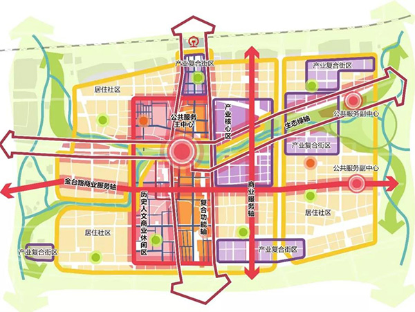 規劃在充分銜接周邊功能、交通、生境的基礎上,挖掘自身特色,融合歷史文化要素,形成了“一城雙軸”的組團空間結構,構建出“東西向自然靈動,南北向規制有序”的總體空間格局。