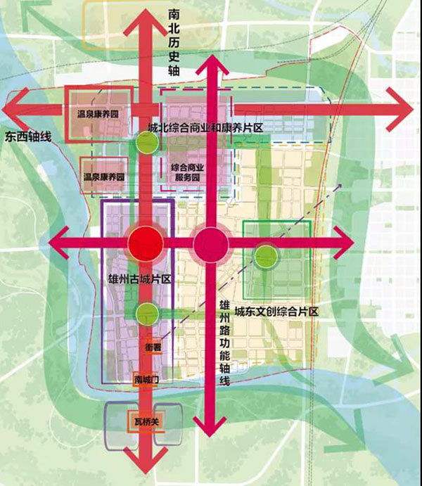 承接非首都功能疏解,提升產業發展水平。雄縣組團縣城片區突出特色,充分利用文化資源、溫泉資源,積極發展文化旅游、溫泉康養產業,形成融合文化、旅游、康養、商業于一體的文化旅游產業鏈,形成古城文旅產業園、古地道文創產業園、溫泉康養園、綜合商業服務園等4個特色產業和創新園區。與起步區、雄東片區、昝崗組團高端高新產業實現差異化發展,共同構建區域分工合理、要素配置科學、結構鏈條清晰的產業體系。