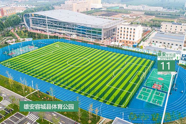 今天是2021年8月11日,星期三,多云,22℃~31℃。在封面和大家見面的是雄安容城縣體育公園航拍圖。