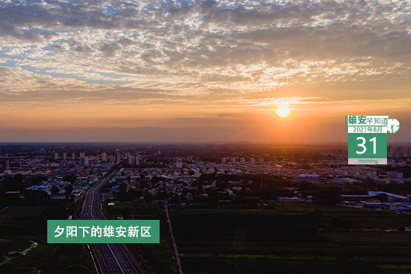 今天是2021年8月31日,星期二,天氣多云轉陰,19℃~28℃。在封面和大家見面的是夕陽下的雄安新區。