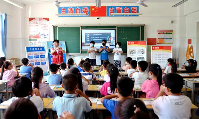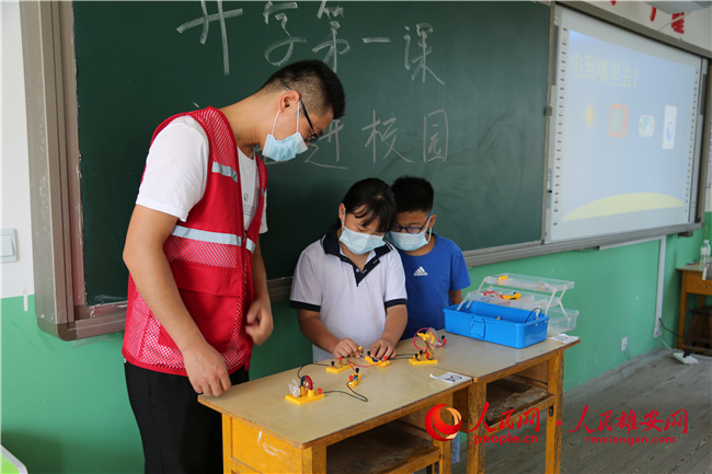 “孩子們經常會接觸到各種各樣的電源、電器,這堂課非常實用!卑残驴h大陽小學安置學校校長韓寧對服務隊帶來的“開學第一課”很是認可。