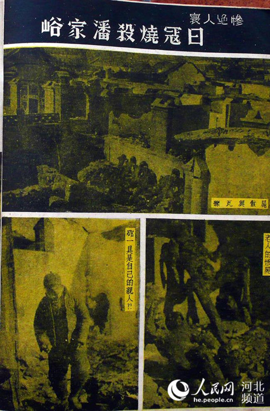 大慘案發生不久,1月31日,八路軍總政前線記者、冀東軍區政治部攝影家雷燁趕到潘家峪大慘案現場,拍下了許多幅照片。此次展出的展品中,就有當時刊登雷燁拍攝的慘案照片的畫報,給讀者極大的震撼。