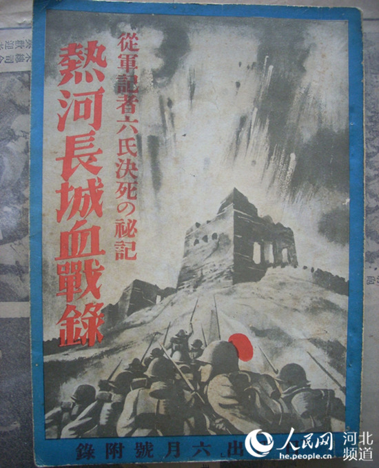 一份展品是1934年日本出版的《熱河長城血戰錄》,這是當時日本隨軍記者對長城抗戰真實的紀錄。這部書中對中國軍隊的英勇抵抗,以及日軍的損失進行了比較真實的描寫,特別是其中日軍慘斗古北口、血戰喜峰口等戰斗描述。