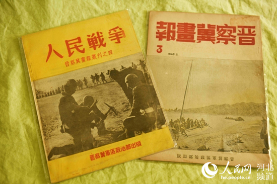 在眾多的展品中,晉察冀軍區政治部出版的《人民戰爭——晉察冀畫報叢刊》更是難得!稌x察冀畫報》是中國共產黨領導的抗日根據地第一份以刊登照片為主的綜合性畫報,1942年7月7日在河北平山縣碾盤溝創刊。