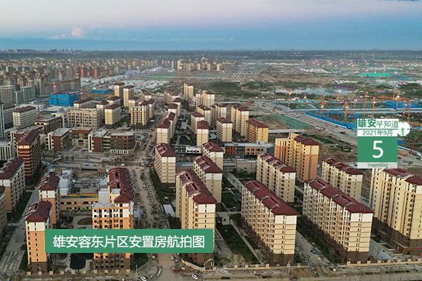今天是2021年9月5日,星期日,雷陣雨轉小雨,20℃~27℃。在封面和大家見面的是雄安容東片區安置房航拍圖。