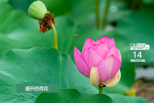 今天是2021年9月14日,星期二,天氣陰轉多云,16℃~27℃。在封面和大家見面的是白洋淀盛開的荷花。