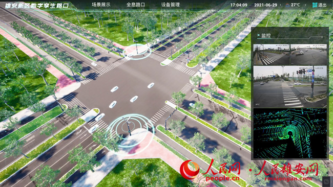 雄安站樞紐片區的數字孿生路口系統示意圖。雄安數字交通實驗室供圖