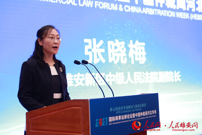 圖為雄安新區中級人民法院副院長張曉梅做主題演講。雄安中院供圖