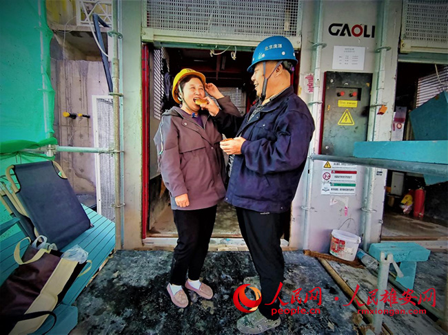 來自河南平頂山的董振武、張素輕夫婦是電梯司機。過完正月初七就回到工作崗位上,一直沒有回家。張素輕大姐感慨:“雖然只是一名普通的電梯司機,但是能參與雄安建設非常高興,在這里吃的好、住的好,工作也順心,現在就想努力工作多掙點錢,過年早點回家陪陪老人和孩子!