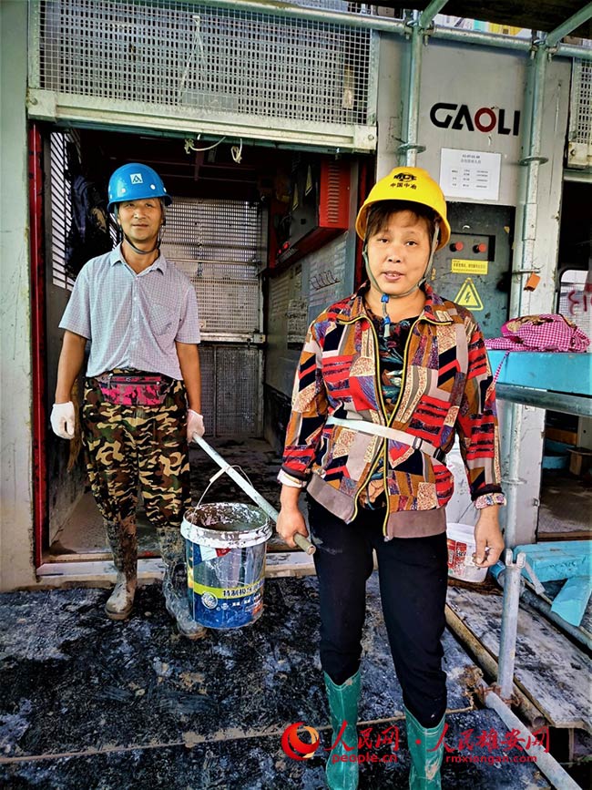 來自四川南充的田劍峰、何惠碧夫婦是施工現場機動人員!拔沂切郯惨粔K磚,哪里需要哪里搬!碧飫Ψ宕蟾缬哪卣f。