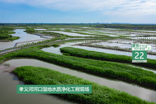 今天是2021年9月22日,星期三,天氣多云轉陰,18℃~28℃。在封面和大家見面的是雄安孝義河河口濕地水質凈化工程現場。