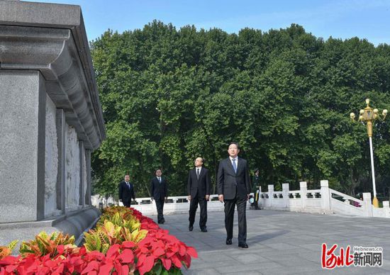 王東峰、許勤、葉冬松、廉毅敏等領導同志緩步繞行,瞻仰華北軍區烈士紀念碑。河北日報記者趙威攝