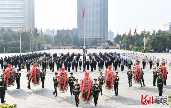 烈士紀念日向華北軍區烈士敬獻花籃儀式在石家莊舉行