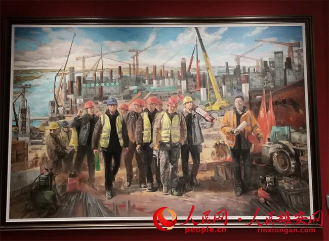 《雄安暢想》作品高3米,寬4.5米,由河北省文聯黨組成員、副主席,河北省美協主席祁海峰主創,歷時兩年完成。整幅作品以雄安建設者為切入點,以建設中的京雄城際雄安站和白洋淀為背景,用藝術形式見證了雄安新區建設現場,用藝術語言描繪了歷史進程面貌。作品給人以強大的視覺沖擊,展示了藝術家的精神風貌和創作實力。