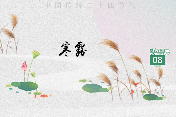 今天是2021年10月8日,星期五,天氣晴轉多云,12℃~20℃。今天是二十四節氣中的寒露,寒露節氣后,晝漸短,夜漸長,日照減少,寒氣漸生。