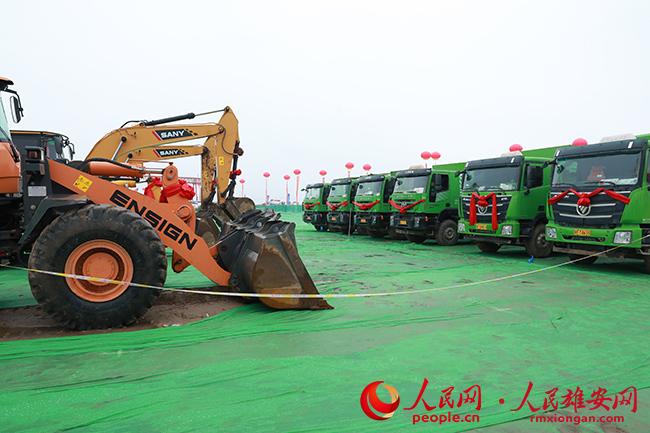 圖為施工機械一齊鳴笛,項目建設正式動土施工。人民網 王紅攝