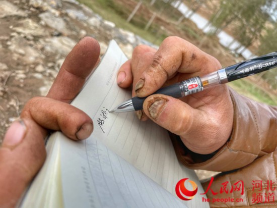 館陶縣王橋鄉徐萬倉村黨支部書記徐俊峰在記錄巡堤記錄。 周紹宗攝