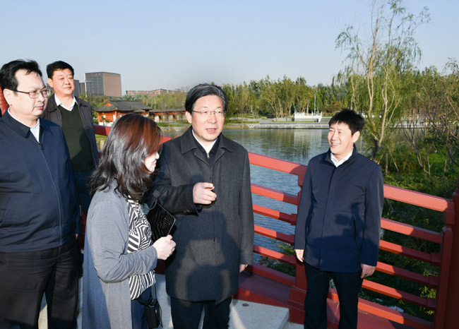 10月17日至18日,河北省委書記、省人大常委會主任王東峰在雄安新區調研檢查。這是王東峰在悅容公園南苑,實地察看公園建設進展情況。河北日報記者趙威攝