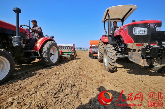 魏縣愛耕農業種植合作社2臺播種機開始播種小麥,其中一臺是省里新支持的電子數控精量播種機。 蒿群英攝