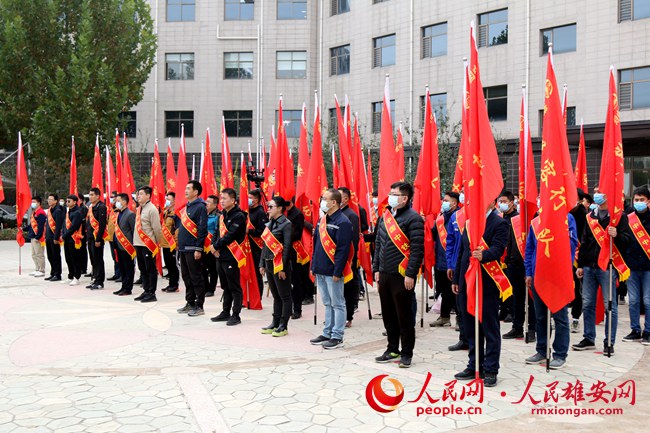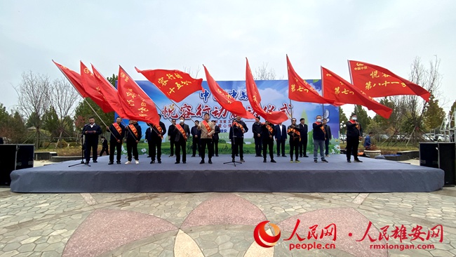 啟動儀式上,中鐵雄安指揮部舉辦了“建設美麗雄安、中鐵悅容先行”動員大會,與會領導為83支志愿服務小分隊進行了授旗,隨后各小分隊代表、安全員代表進行了表態發言。