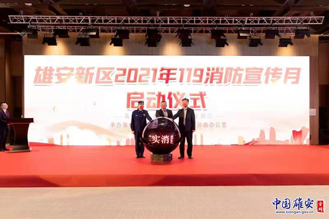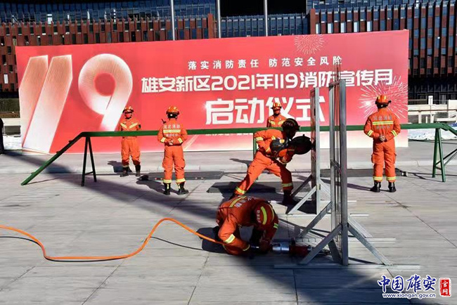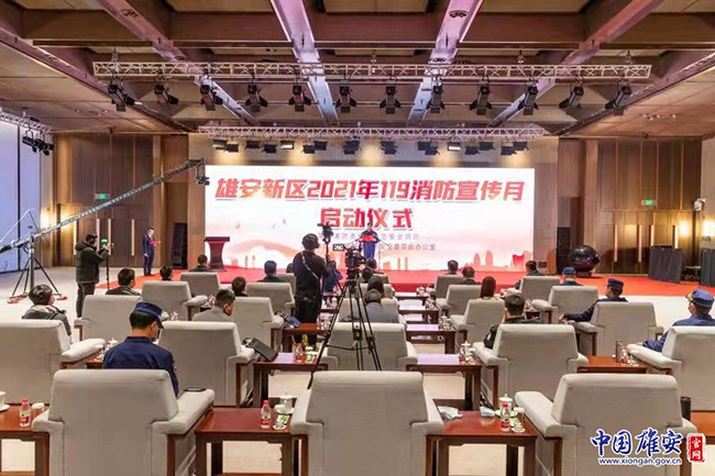 11月9日,雄安新區2021年“119”消防宣傳月啟動儀式在雄安商務服務中心舉行。圖為啟動儀式現場。高盟攝
