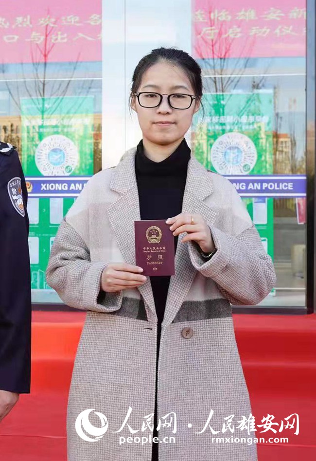 10日上午,來自容城縣的居民蔡紫怡在雄安新區公安局人口與出入境服務大廳領取了自己的護照。這也是大廳投入使用后辦理的第一批護照。雄安新區公安局供圖
