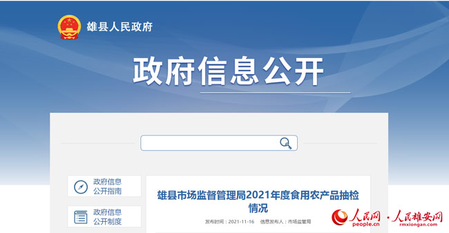 雄縣市場監督管理局2021年度食用農產品抽檢情況