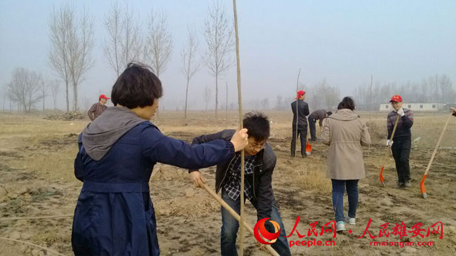 田迎賓(中)同郝各莊村村民種樹。七間房鄉人民政府供圖