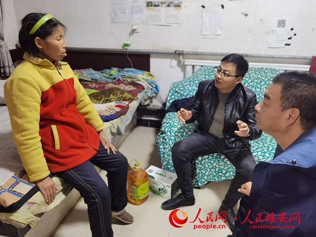 田迎賓(中)曾多次到郝各莊村建檔立卡貧困戶家中走訪慰問。七間房鄉人民政府供圖