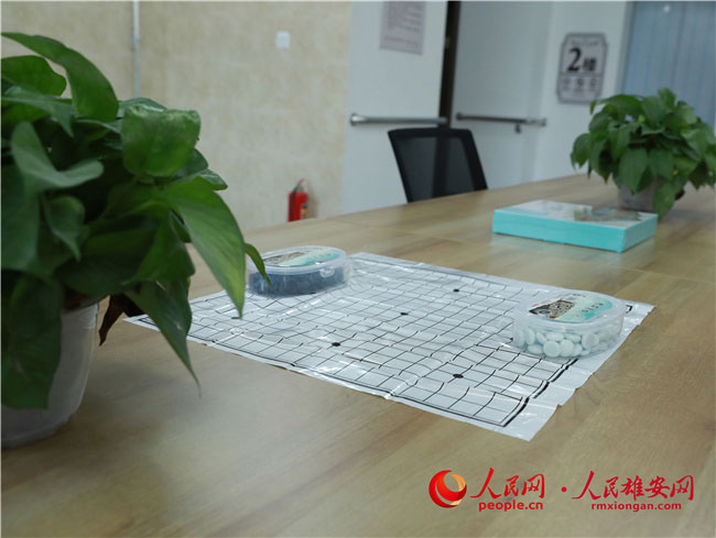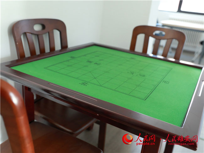容東第三養老驛站活動區配備的象棋桌。人民網 李兆民攝