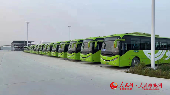 圖為排列整齊的公交車。中國雄安集團交通有限公司供圖