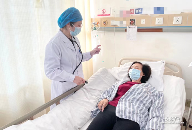 今天咳痰厲害嗎?痰是什么顏色?氣管鏡做了嗎……袁雅冬一邊用聽診器聽診,一邊耐心詢問病情。