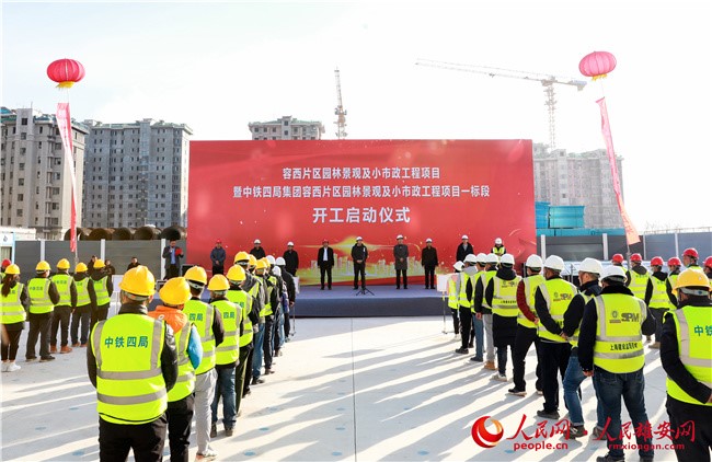 雄安新區容西片區園林景觀及小市政工程項目一標開工啟動儀式現場。人民網 宋燁文攝