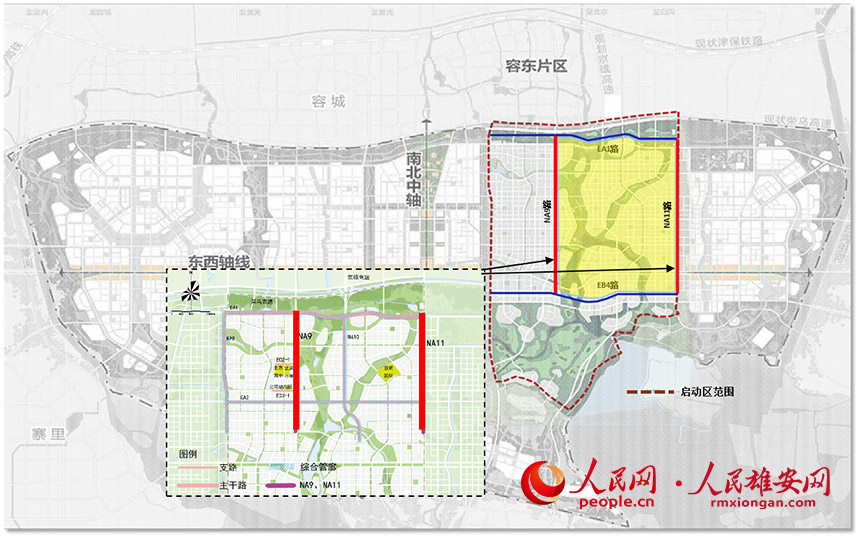 據了解,NA11市政道路是雄安新區啟動區“兩橫四縱”道路工程的重要組成部分之一。該項目位于啟動區東側,北起EA1路,南至EB4路,規劃道路等級為城市主干路,全長2980米,寬44米,雙向六車道,設計車速60千米/小時。
