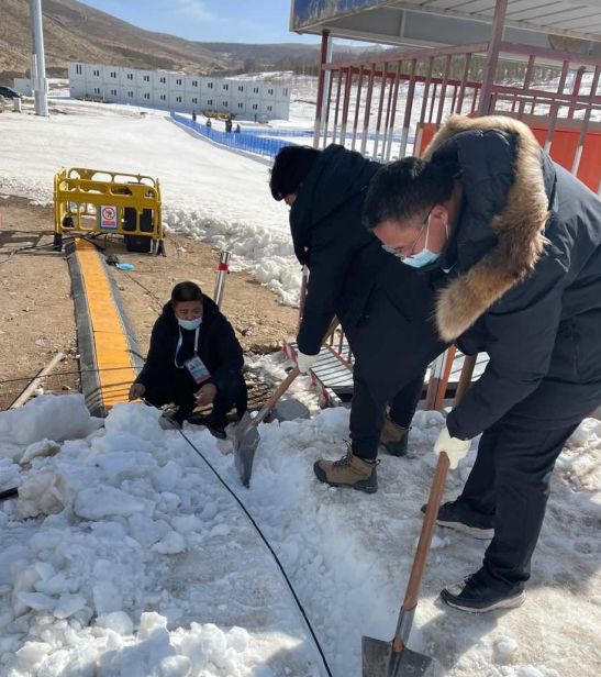 圖為國家越野滑雪中心通信保障團隊的工作人員正在施工。 河北聯通供圖