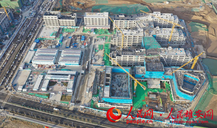 航拍雄安新區容東片區完全中學項目。中建八局供圖