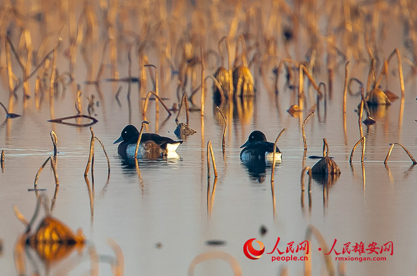 “大鴇已經是連續16次在雄安新區越冬了,青頭潛鴨是《世界自然保護聯盟瀕危物種紅色名錄》中‘極!锓N,它們的出現,表明了白洋淀生態環境持續向好!卑籽蟮頋竦乇Wo區管理中心工作人員齊洺介紹。