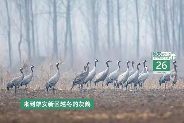 今天是2021年12月26日,星期日,晴 ,-11℃~1℃。在封面和大家見面的是來雄安越冬的灰鶴。