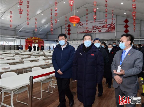 12月25日,省委書記、省人大常委會主任王東峰在張家口市崇禮區調研檢查。這是王東峰在運動員餐廳、工作人員餐廳詳細察看相關工作。 河北日報記者趙海江攝
