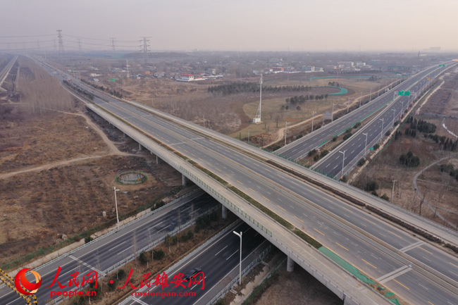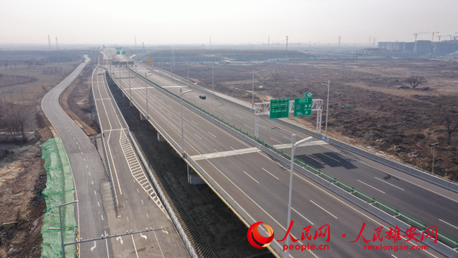 航拍上跨京雄高速的S333省道新建4號橋。人民網 李兆民攝
